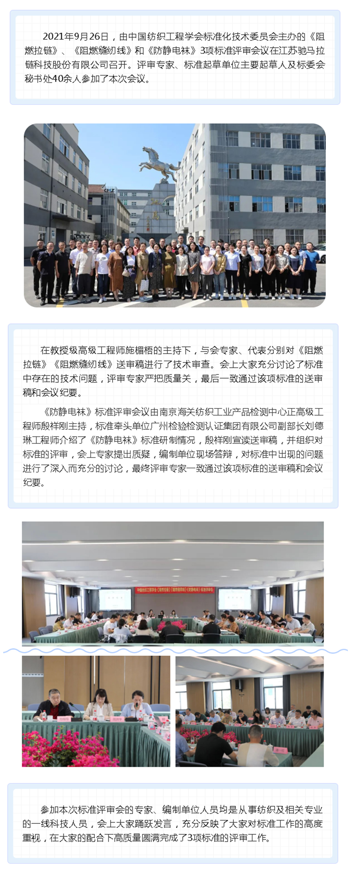 中國紡織學(xué)會(huì )標準評審會(huì )議在馳馬拉鏈順利召開(kāi)