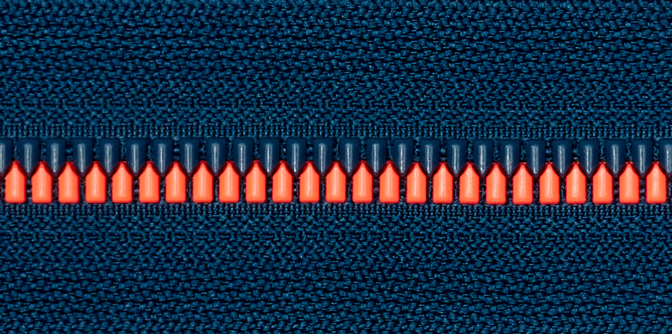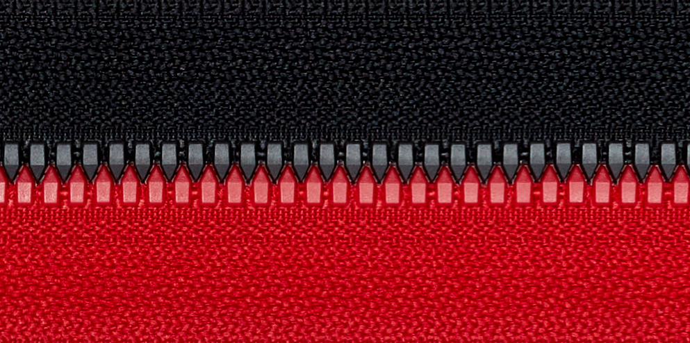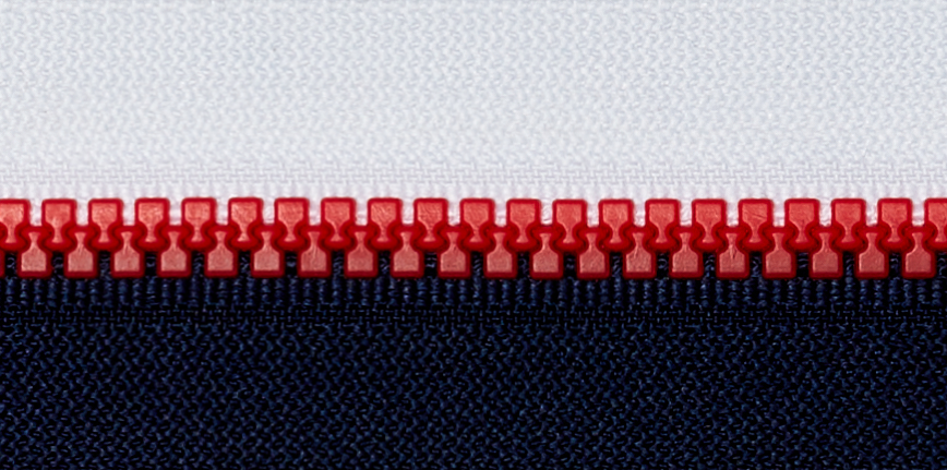 樹(shù)脂拉鏈采用塑料注塑成型的方式生產(chǎn),選用的材料為聚甲醛(POM),本款拉鏈鏈牙顏色與布帶顏色有多種組合方式。